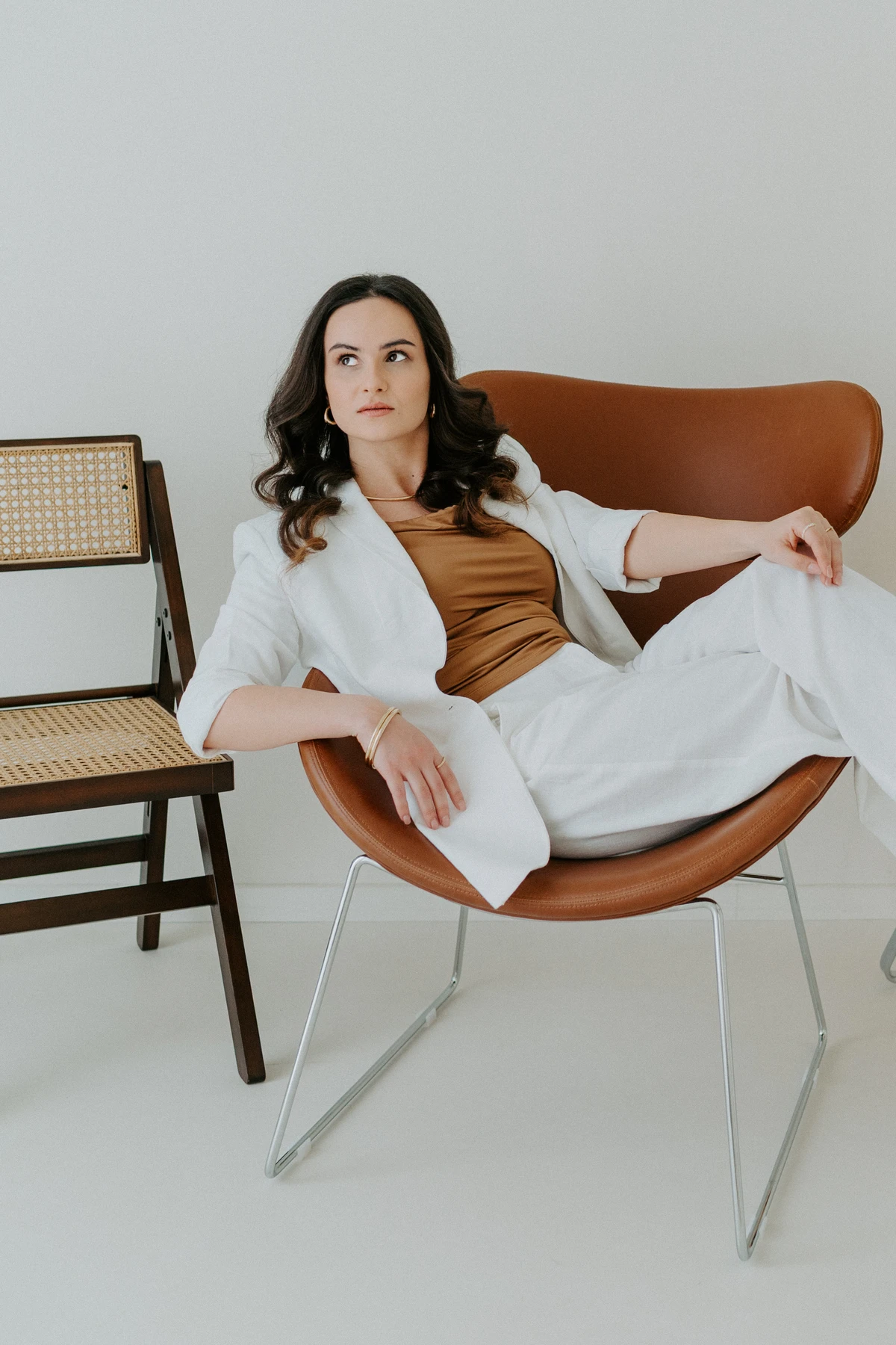 Micha kümmert sich am Shootingtag um Haare und Make-up, abgestimmt auf dich und dein Branding. Wir haben eine Auswahl an Outfits im Studio, passend zu unserem Bildstil. Du kannst eigene Sachen mitbringen, musst aber nicht.